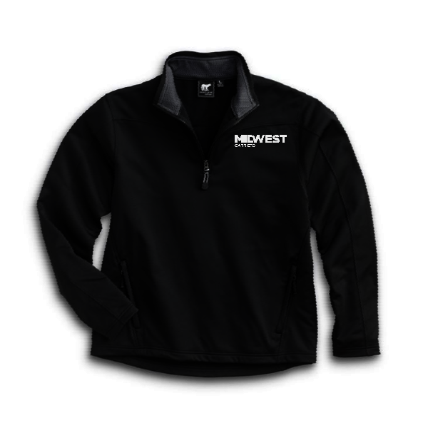 ight weight soft shell performance knit fabric 160gr/m2, 1/4 Zip pullover with # 5 YKK main zipper with rubber pull, Open bottom hem, 2 Front pockets with YKK zippers and fabric pulls. Shoulder and back seams ergonomically located for fit, function and easy decoration. Contrast Mesh inside collar for comfort and performance